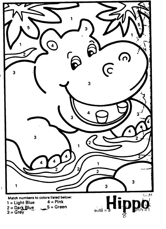 Hình cho bé tô màu theo số chủ đề con hà mã