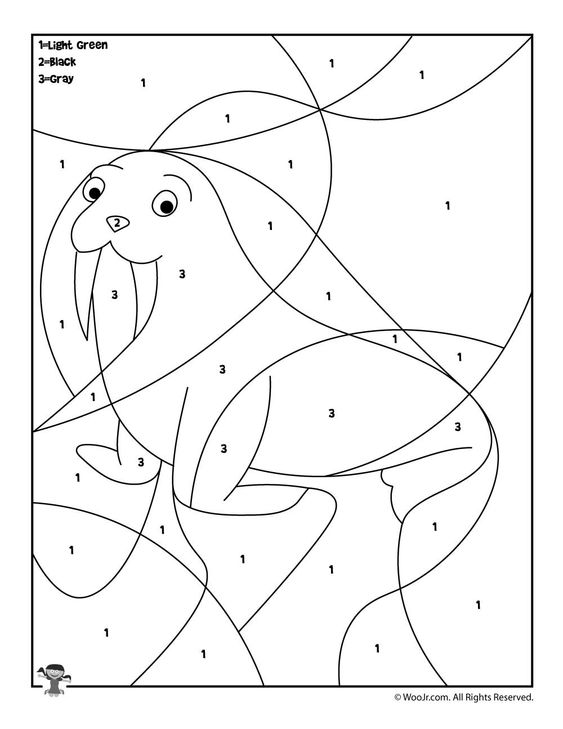 Tranh cho bé tô màu theo số chủ đề con hải cẩu. Con chưa biết đọc, bố mẹ chấm màu tương ứng cạnh bảng số để con dễ nhận biết
